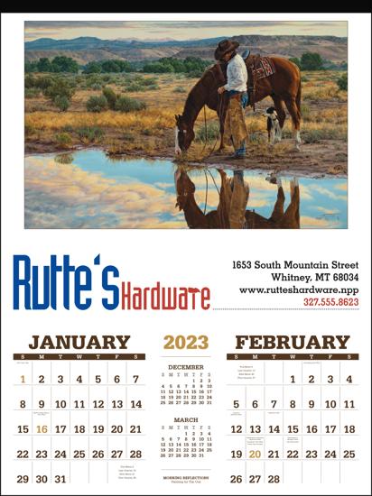 - Theme: Artist Tim Cox brings the American West to life with his artistic style. Many businesses can incorporate this calendar into their western theme.