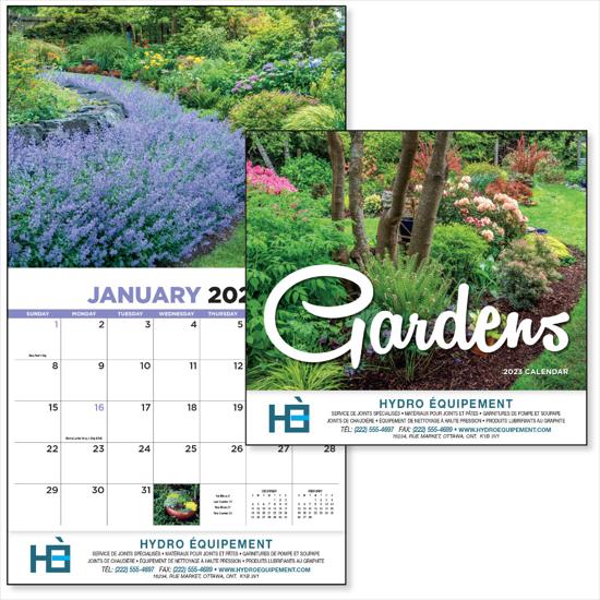 - Theme: No matter what climate you live in, you can enjoy views of beautiful gardens all year long. This gorgeous calendar features a variety of gardens from floral to lush backyard retreats.
