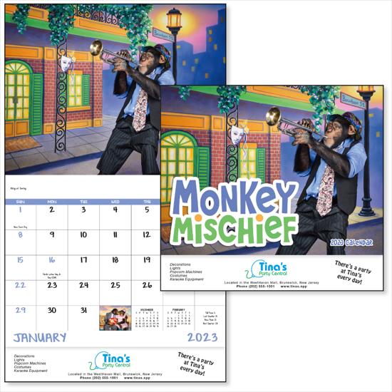 - Theme: Whimsical photos of monkeys provide a humorous look at everyday life in this 13-month calendar.