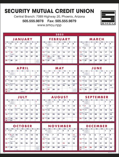 - Layout: This handy calendar is in a span-a-year format. Tinned at the top and bottom with a loop for hanging.