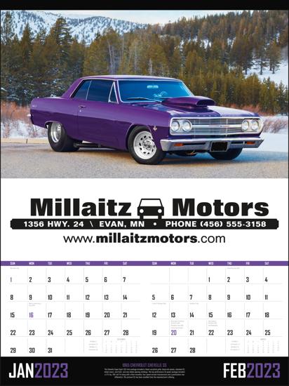 - Theme: Classic Cars of America make this calendar an advertising vehicle that can be used for countless businesses. With the striking color and engaging history of each car, people are sure to love this calendar.