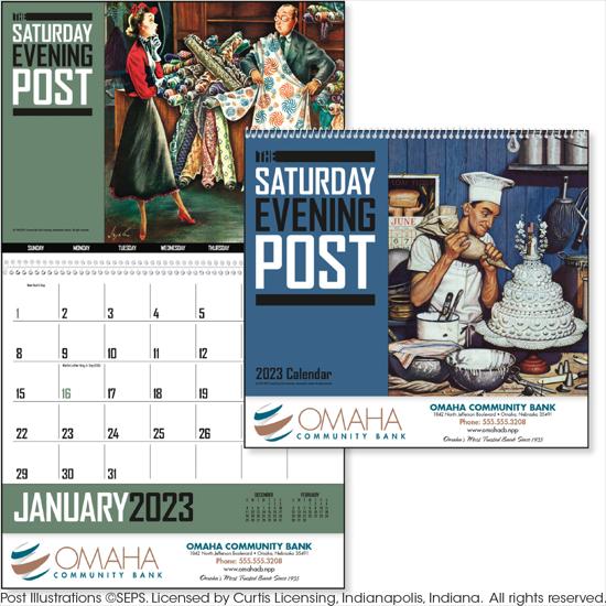 - Theme: The Saturday Evening Post Illustrations by Norman Rockwell. The historic Rockwell images and classic calendar design will stir memories and add a touch of nostalgia to any brand or message.