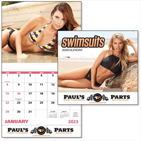 - Theme: Beautiful women in swimsuits give this 13-month calendar a sporty look