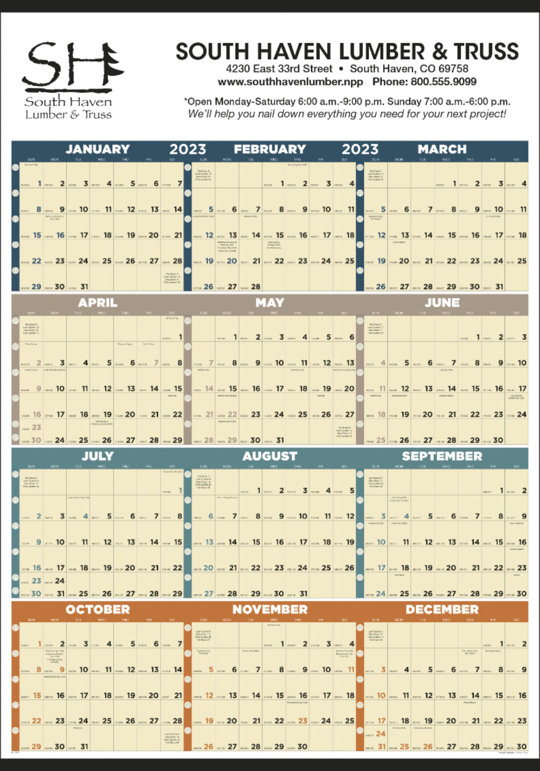 - Layout: Tinned at the top and bottom, this handy calendar is in a jumbo span-a-year format.