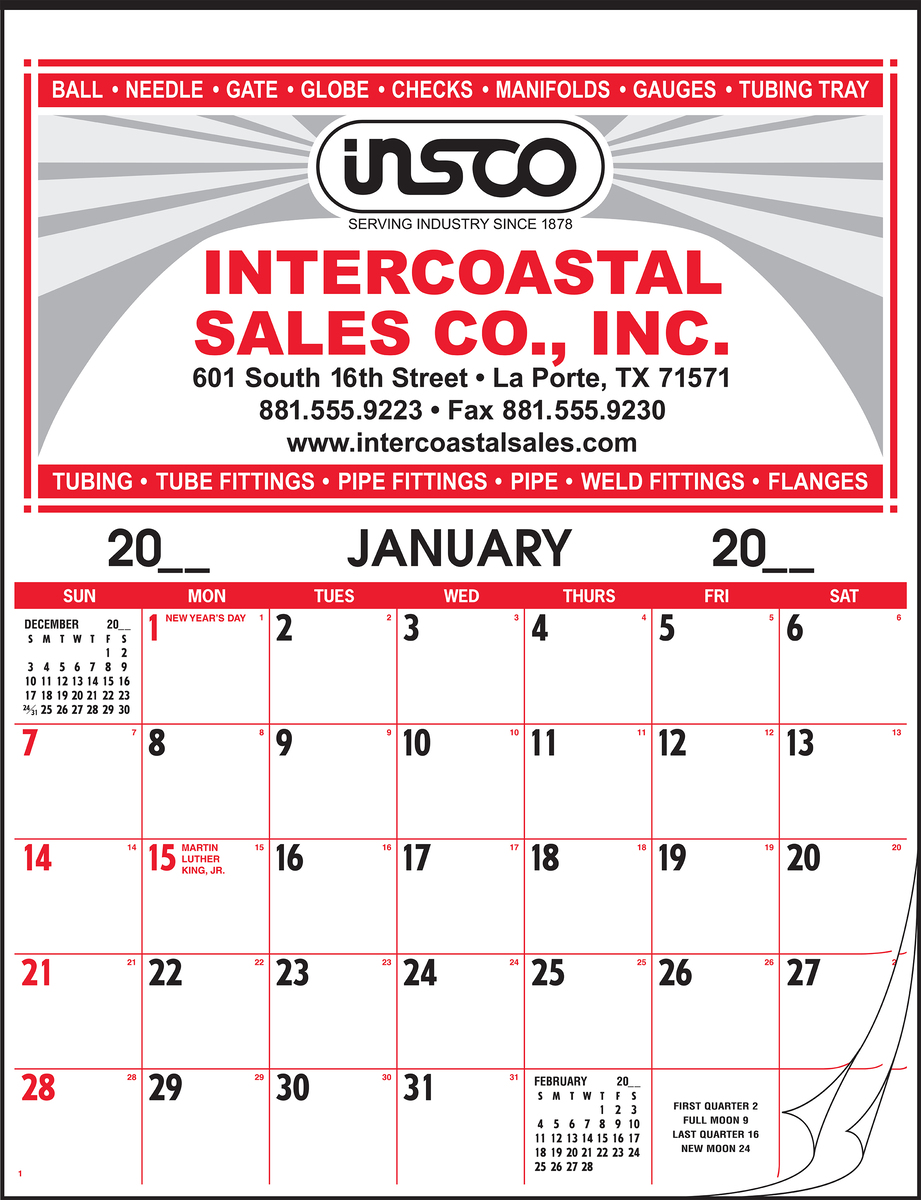 - Layout: This small size memo calendar is our least expensive 12-sheet calendar. For a small calendar the No. 500 has plenty of daily memo space(1½" x 1¼ "). The calendar has printed holidays, moon phases and ascending julian dates.