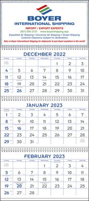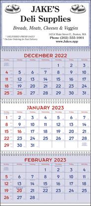 - Layout:This 14-month calendar runs from December through January. The 4-panel/3 pad style is twin-looped and has a large imprint area.
