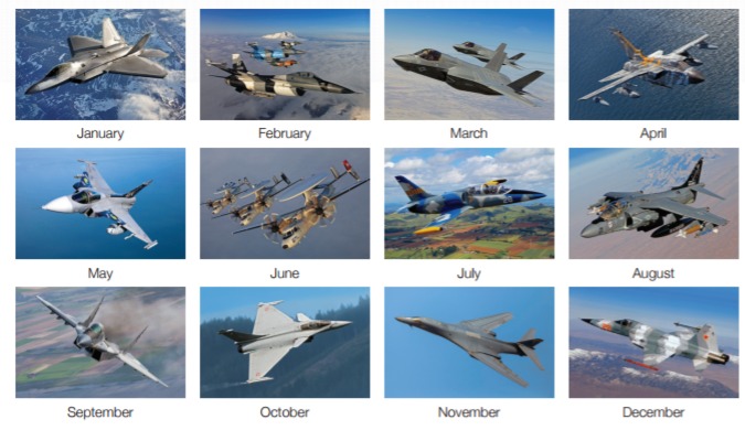 - Theme: The most popular Military Jets calendar in the industry. With outstanding photos of jets in flight, this is the truly "top-gun" in its class.