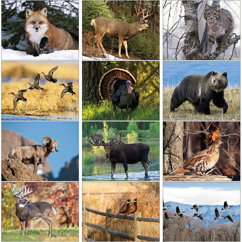 - Theme: This calendar is filled with information on hunting and fishing and the Wright's Guide. The beautiful photographs show wildlife in a variety of situations and includes information about each featured animal.